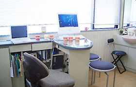 | 患者様に治療内容や診療についてご説明したり、患者様自身からお困りのことなどをお聞きしたりするカウンセリングスペースです。模型やモニターを使って、今後の治療についてわかりやすくご説明します。 | ![]() |
